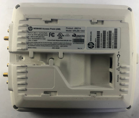HP MSM466 Wireless Access Point P/N: J9621A Model: MRLBB-1002 Wireless Protocol: 802.11b/g/n Data Transfer Rate: 450 Mbps