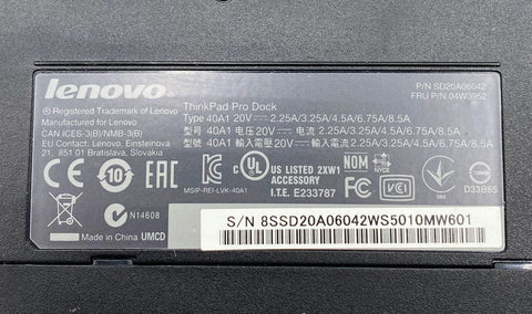 Lenovo ThinkPad Pro Dock Type 40A1 SD20A06042, With Key