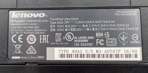 Lenovo ThinkPad Ultra Dock Type 40A2 SD20A06046, With Key