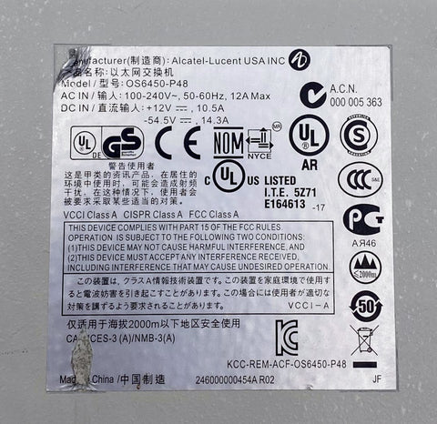 Alcatel-Lucent OS6450-P48 Gigabit PoE Network Switch