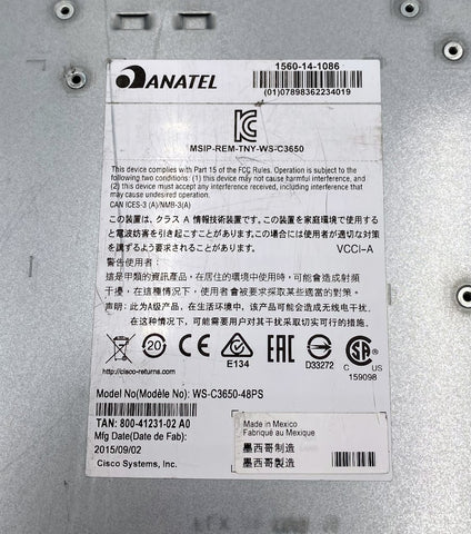 Cisco WS-C3650-48PS V03 Catalyst 48-Port PoE+ Gigabit Switch
