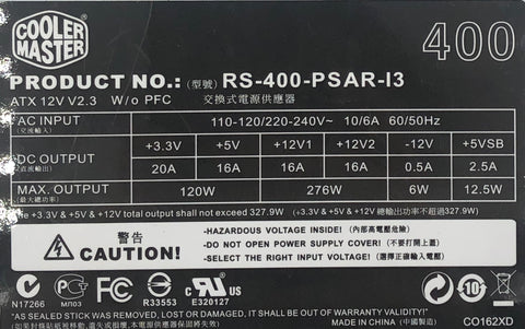 Cooler Master Elite Power RS-400-PSAR-I3 400W Desktop Power Supply