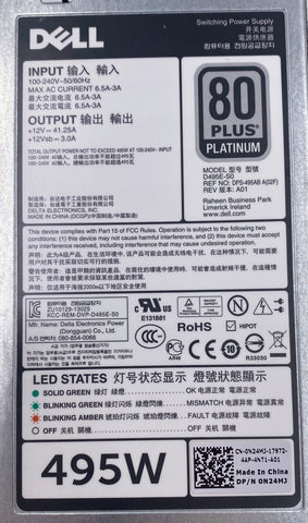 Dell 495W 80 Plus Platinum Switching Power Supply N24MJ