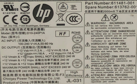 HP Compaq 8300 Elite SFF PC D10-240P1A 240W Switching Power Supply- 613762-001