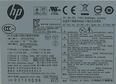 HP Compaq Pro 6305 SFF PC PS-4241-9HB 240W Power Supply- 613762-001